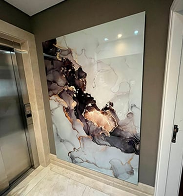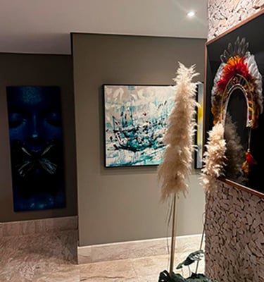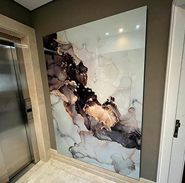 Criamos obras que se integram à arquitetura, ampliando profundidade, luz e personalidade, para que a arte deixe de ser detalhe e passe a definir o ambiente.